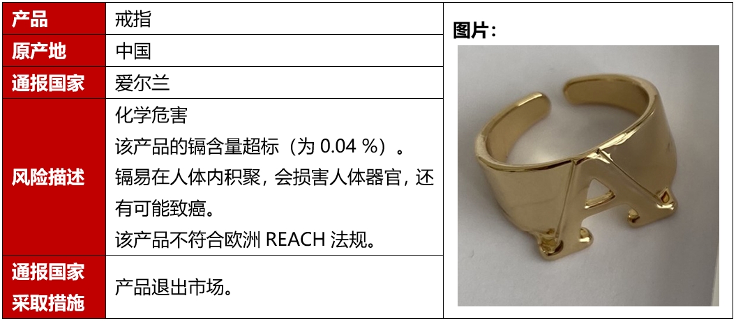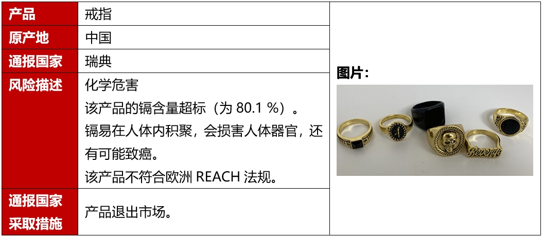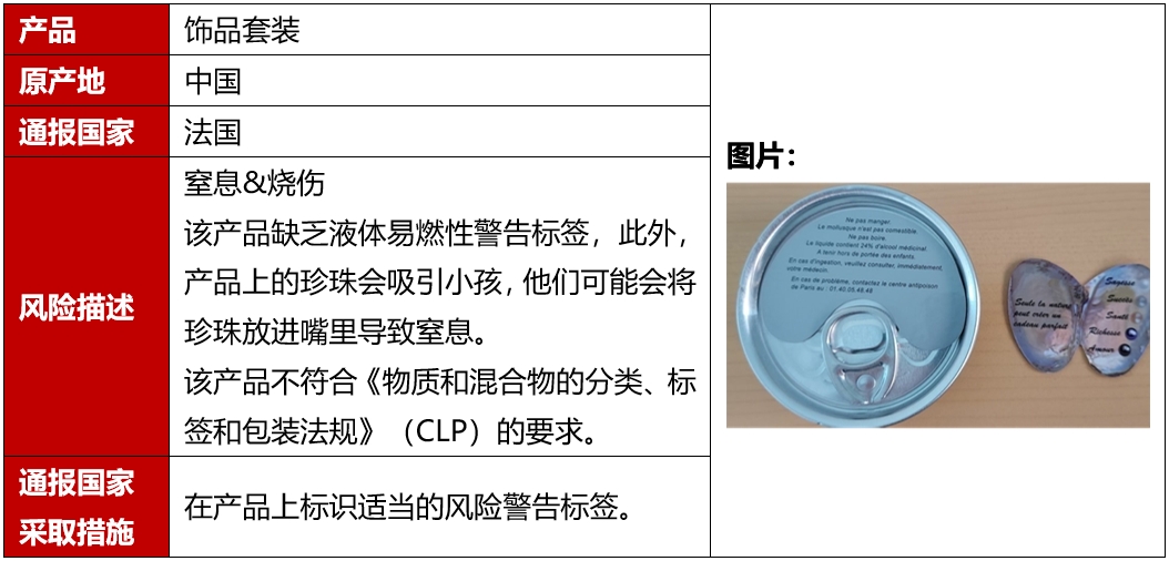 2024年3月,歐盟、美國、加拿大和澳洲共發(fā)生6例飾品召回案例,這些召回發(fā)生在歐盟和美國,且是因為存在窒息、燒傷或化學(xué)危害而被召回。