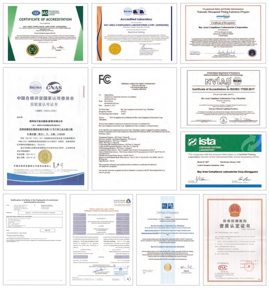 • 美國FCC認證機構,加拿大ISED認證機構;