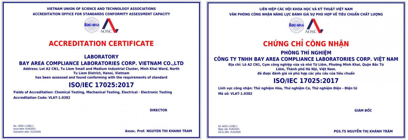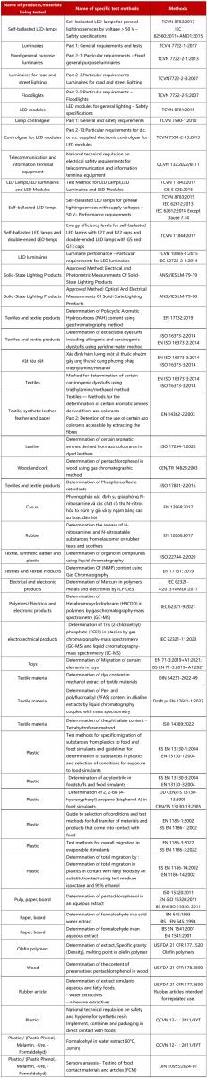此次擴項,BACL越南實(shí)驗室所申請的340個(gè)標準測試項目全部獲得AOSC的一致認可與推薦,部分如下: