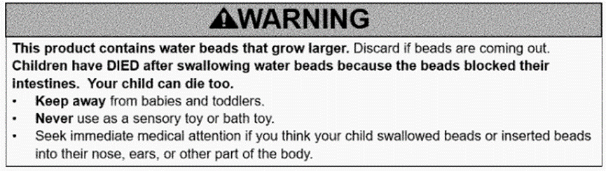近日,美國消費品安全委員會(huì )(CPSC)發(fā)布了一份擬議規則制定通知,擬修訂現行的玩具消費品安全規則(16 CFR 1250),新增對水珠玩具(Water Bead Toys)和含水珠玩具的性能、丙烯酰胺限量和標簽的要求。有關(guān)方可在2024年11月8日之前提交意見(jiàn)。