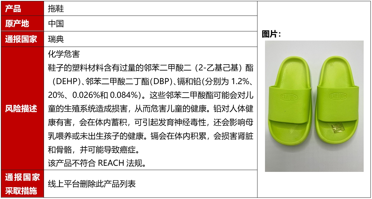 2024年9月,歐盟、美國、加拿大和澳洲共發(fā)生5例鞋類(lèi)召回案例。這些召回發(fā)生在歐盟,且是因為存在化學(xué)危害被召回的。