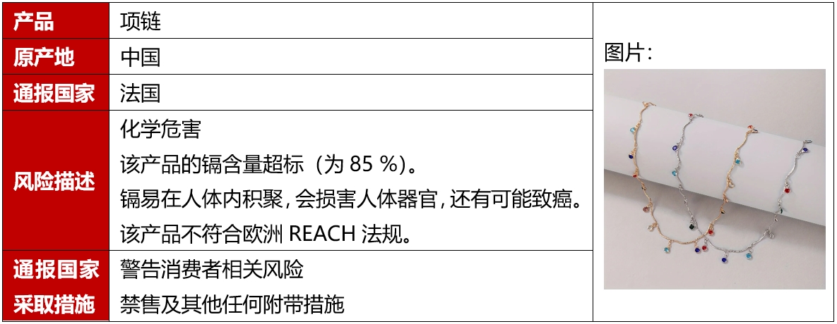 2024年9月,歐盟、美國、加拿大和澳洲共發(fā)生8例飾品召回案例,這些召回發(fā)生在歐盟和美國,且都是因為存在化學(xué)危害而被召回的。