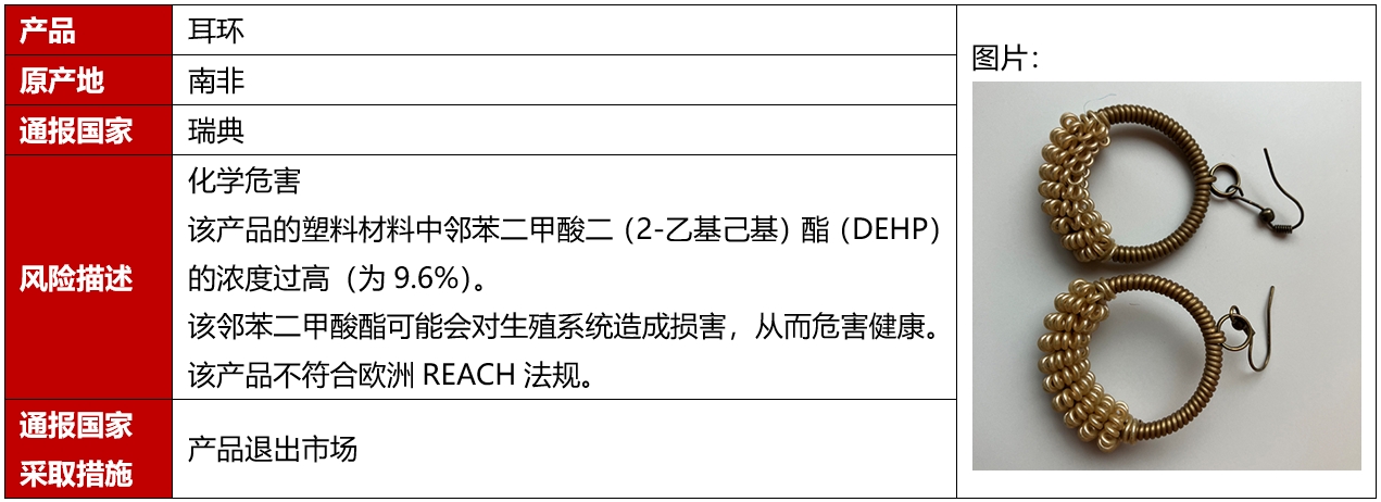 2024年10月,歐盟、美國、加拿大和澳洲共發(fā)生10例飾品召回案例,這些召回發(fā)生在歐盟,且都是因為存在化學(xué)危害而被召回的。