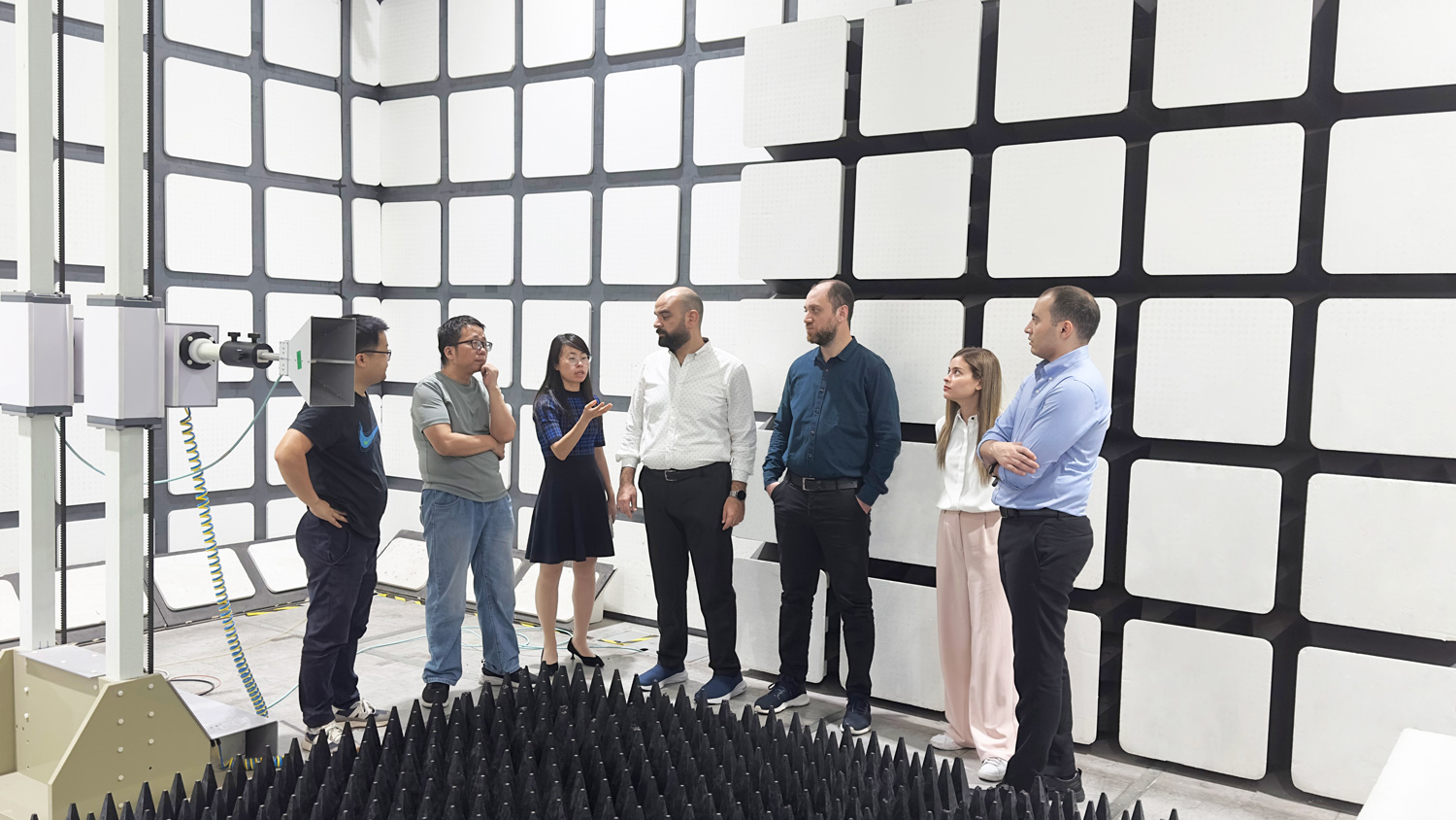 到訪(fǎng)期間,NTRA官員參觀(guān)了BACL的各大實(shí)驗室,包括電磁兼容、無(wú)線(xiàn)射頻、安規、可靠性等,近距離了解BACL的檢測技術(shù)、實(shí)驗室管理及設備運營(yíng)狀態(tài),并現場(chǎng)觀(guān)摩了藍牙(BT)、Wi-Fi等網(wǎng)絡(luò )制式的終端產(chǎn)品測試全過(guò)程。NTRA官員對BACL在硬件設施、技術(shù)創(chuàng )新和團隊專(zhuān)業(yè)能力方面所展現出的卓越水平給予了高度評價(jià)。