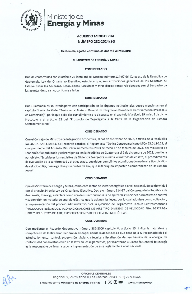 能源和礦業(yè)部 (MEM) 通過(guò)部長(cháng)協(xié)議 232-2024/SG 同意采用中美洲技術(shù)法規 23.01.80:21,該法規適用于電氣產(chǎn)品、定速、自由排放和無(wú)風(fēng)管的分體式空調、能效規范,以供全國實(shí)施。