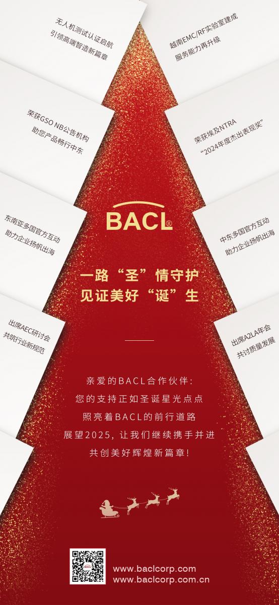 [導讀]: 在這個(gè)溫馨美好的圣誕節, BACL向您致以最誠摯的節日祝福! 感謝您的持續支持與信任, 期待新的一年, 我們繼續攜手并進(jìn), 在追求卓越的道路上, 不斷書(shū)寫(xiě)新的篇章, 共創(chuàng )一個(gè)更加美好的世界! BACL祝您及家人圣...
