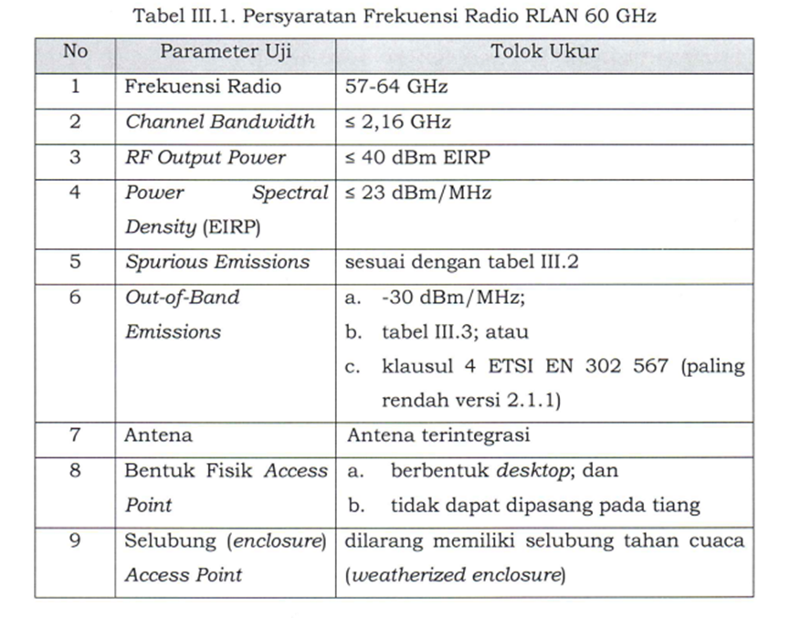 此次更新的一大亮點(diǎn)是引入了 5925 – 6425 MHz 頻段,允許使用 Wi-Fi 6E 和 Wi-Fi 7 等先進(jìn)技術(shù)。此外,57-64 GHz 分配支持部署多個(gè)千兆無(wú)線(xiàn)系統,標志著(zhù)印尼無(wú)線(xiàn)能力的重大飛躍。