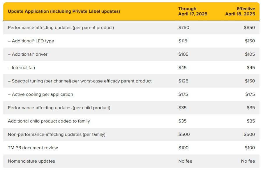 自2025年4月18日起,Hort V4.0的某些申請費用項目將增加,此費用增加使DLC能夠保持對每個(gè)申請的嚴格評估和審查水平,并支持新的QPL功能,為最終用戶(hù)提供更好的信息。申請將產(chǎn)品升級到Hort V4.0,其中所列產(chǎn)品的性能自初始遞交以來(lái)沒(méi)有變化的,將收取500美元的非性能影響更新費用(每個(gè)系列)。