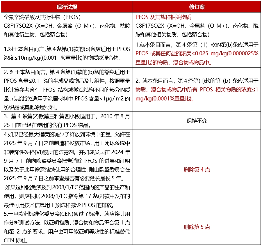 [導讀]: 2025年4月14日,歐盟委員會(huì )批準一項授權法規,修訂歐盟持久性有機污染物(POPs)法規(EU) 2019/1021附錄I中有關(guān)全氟辛基磺酸(PFOS)、其鹽類(lèi)和PFOS相關(guān)化合物的限值。該授權法規將發(fā)布于歐盟官方公報(OJEU)上,并將從2025年12月3日起執行。 擬...