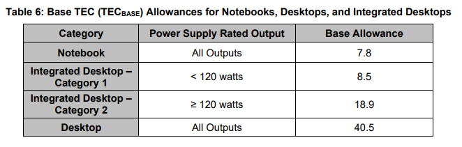變更四:簡(jiǎn)化筆記本電腦,一體機,臺式電腦的TEC基礎容許值。