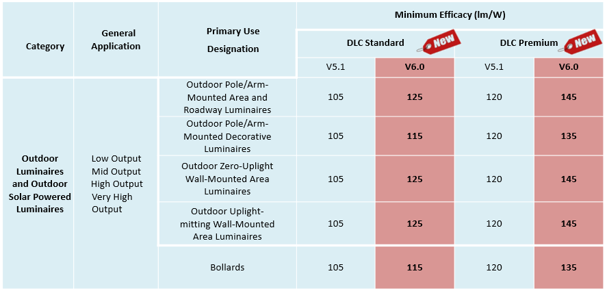 • 光效閾值提升,并引入按主要用途指定 (PUD) 劃分的戶(hù)外功效閾值,而不是對所有戶(hù)外產(chǎn)品使用單一的通用光效閾值