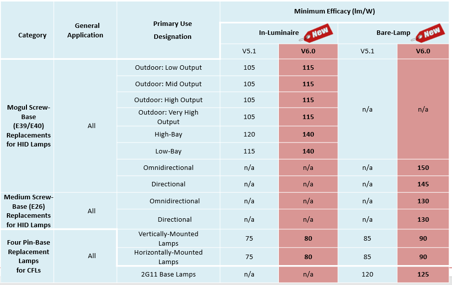• 增加E39/E40和E26替換HID的全向和定向光源類(lèi)別